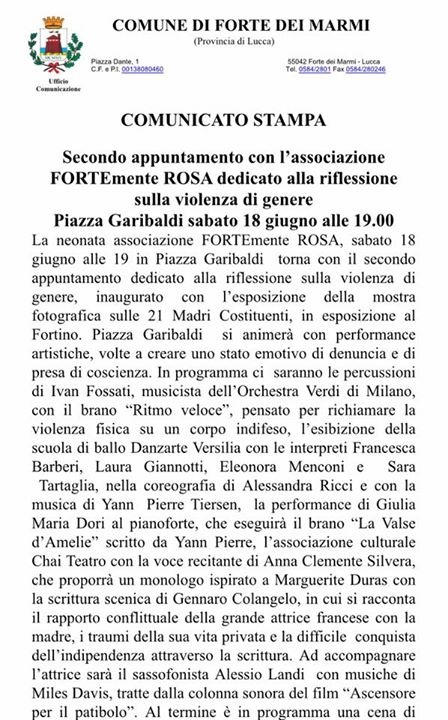 L'associazione culturale FORTEmenteROSA con il patrocinio del Comune di Forte dei Marmi